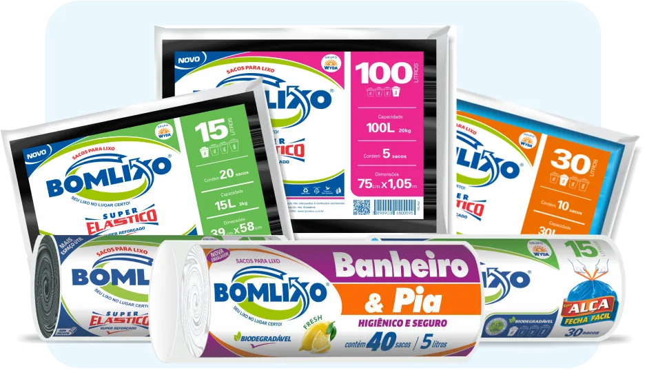 Tudo o que você precisa em um só lugar! Conheça a linha completa da BOMLIXO e encontre o produto ideal para cada necessidade: seja no dia a dia, na empresa ou como a imaginação mandar.